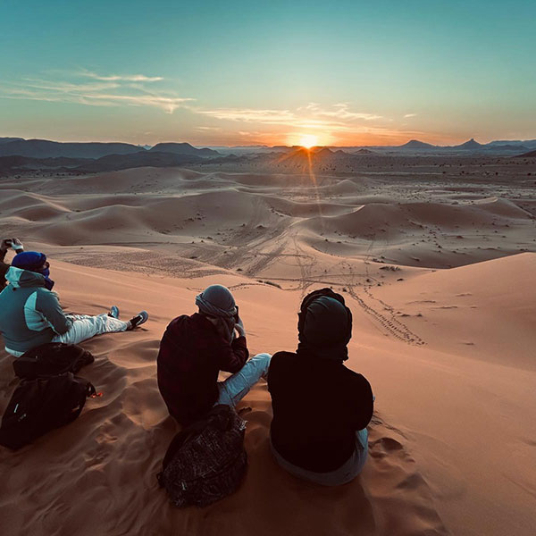 Von Merzougha aus erreichen Sie das Hotel über die Westroute in ca. 1 bis 1,5 Stunden – anfangs ca. 3 km über befestigte Straßen, danach über unbefestigte Wege. Wir bieten einen Shuttleservice für diesen Teil der Anfahrt…