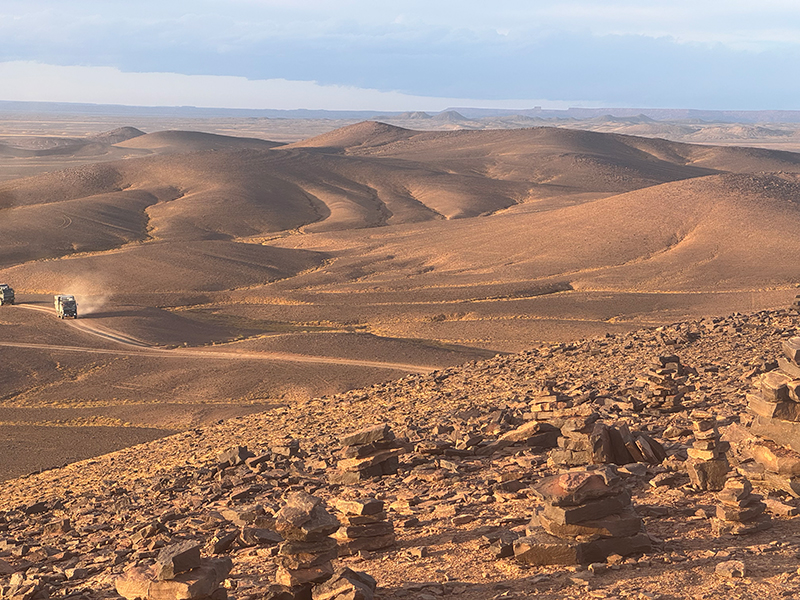Eine Ostroute führt ebenfalls von Merzougha aus bis zum Riad Belvedere, Sie fahren ca. 20 min auf einer Asphaltsstraße und danach ca.1,5 Stunden über eine atemberaubende Offroad Piste bis zum Hotel.