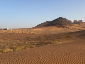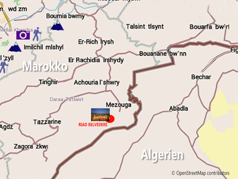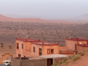 Von Merzougha aus erreichen Sie das Hotel über die Westroute in ca. 1 bis 1,5 Stunden – anfangs ca. 3 km über befestigte Straßen, danach über unbefestigte Wege. Wir bieten einen Shuttleservice für diesen Teil der Anfahrt…